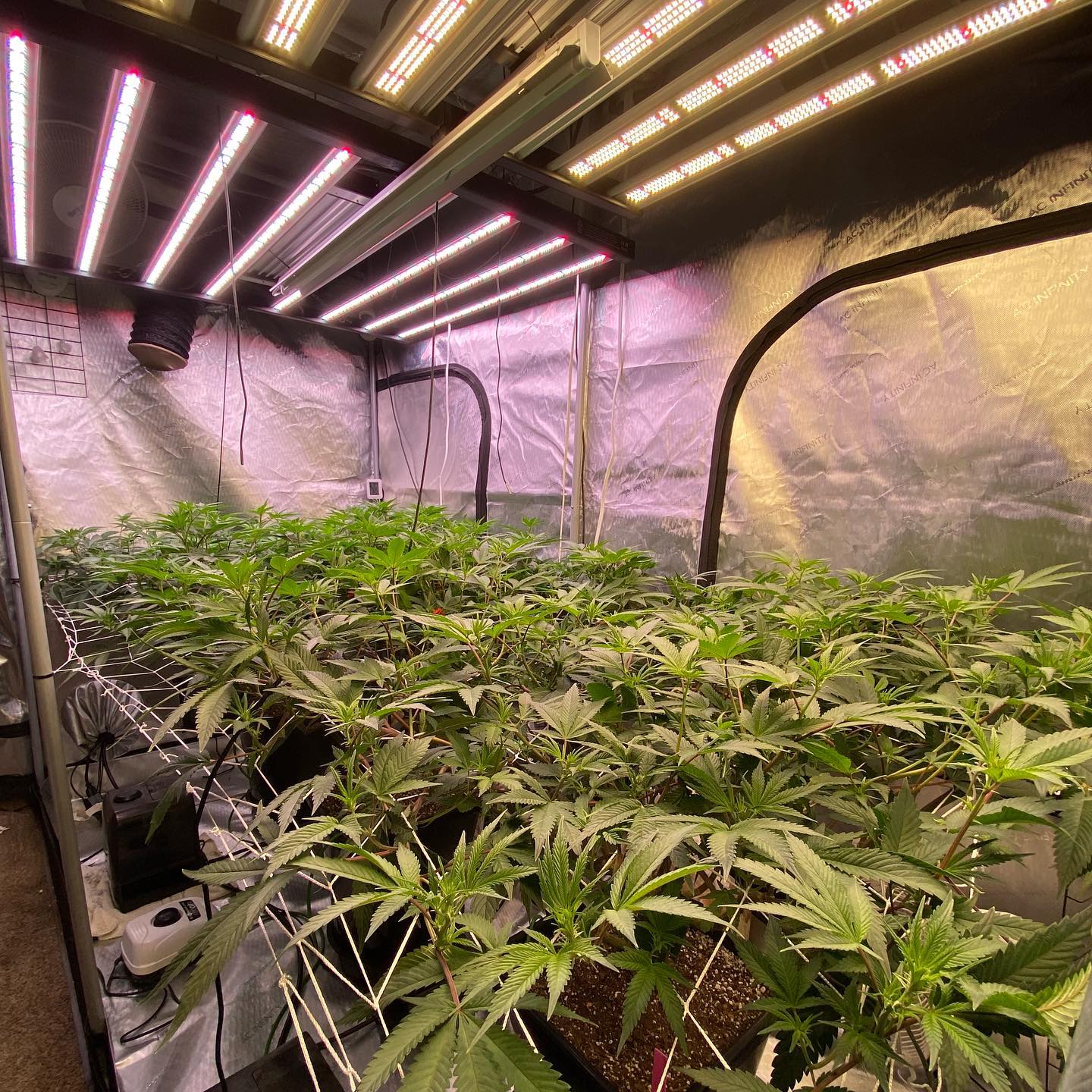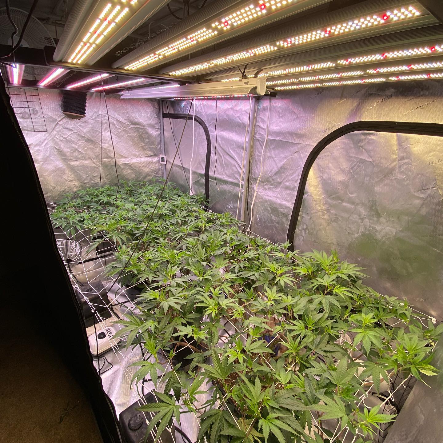My 8x4 tent setup is equipped with 2 of my #hyphotonflux LED lights, PRO720 and HPF4000 which are set at 50% each, and pulling 572 watts from the wall.These babys are growing faster this week.